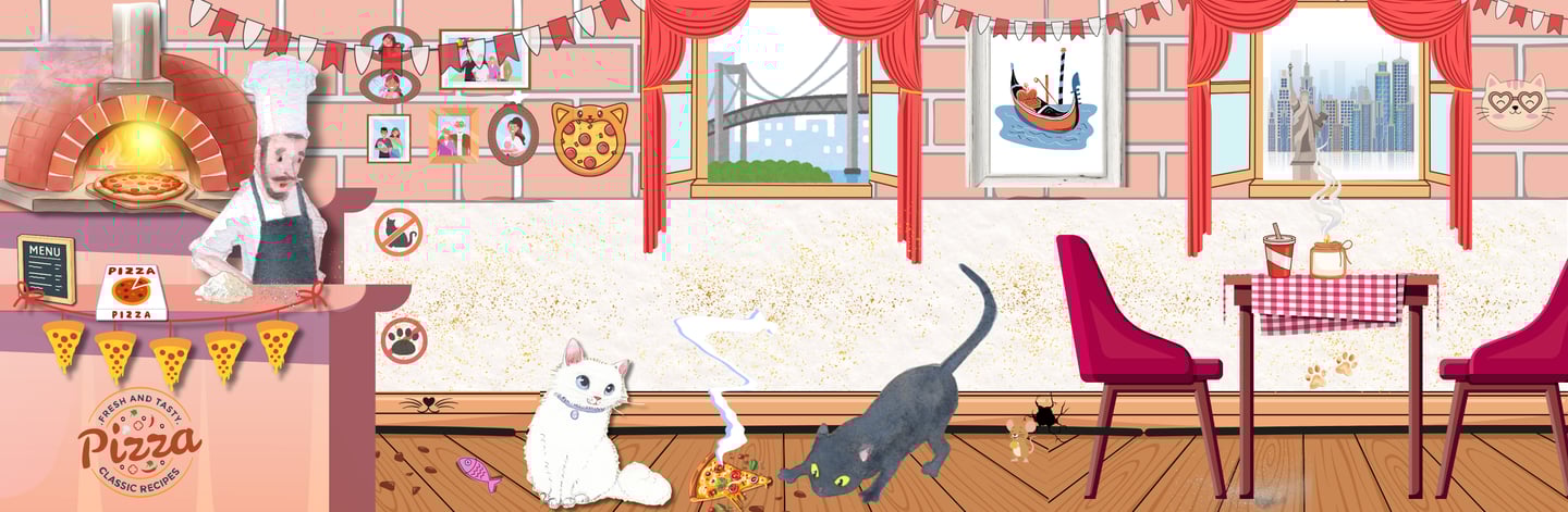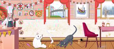 Salz, a fluffy white cat with big opinions about pizza crust, and Peppa, a clever black cat who notices everything, spend their days exploring the streets of Brooklyn, solving neighborhood mysteries, and making sure the pizza of New York stays safe.