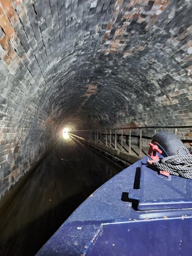 KEYNOTE: The runner needs a working UK cell phone or a walkie-talkie to communicate with their boat about the status and whether it is clear to enter the single-lane canal and single-lane tunnels. The runner also needs a flashlight as it is pitch black in the long tunnels.