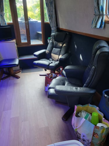 We boarded the boat on Monday afternoon and disembarked early Friday morning. There were three of us, all adults. We rented a narrowboat that had two double beds, two toilets, and one shower. The boat had a kitchen, a table with four chairs for eating, and two lounge chairs. There was a TV monitor but we never turned it on.